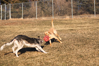 Next I had to set up Melissa’s indoor time to be more interesting. I had become lax in giving M something really good to do while in her x-pen while I was gone from the house. From Melissa’s viewpoint it was boring to be confined indoors. After making sure she was well exercised outdoors I set about to making indoor time more fun and interesting for her. I rotated toys. I made her interactive toys a bit harder, but also more enticing. Instead of cream cheese or peanut butter which I had used for the last few weeks (how boring and predictable could I be?) I began stuffing her Twist and Treat with some cubed cheese or chicken. I also went back to feeding the remainder of her meals we had not used outdoors for training to stuff Kongs and hollowed out marrow bones. I took a trip to a butcher and got huge knuckle bones for Melissa to work on while she was home alone in her ex-pen. Thinking back on the past 3 to 4 weeks, I had set up Melissa’s time alone indoors to become very BORING. No wonder playing outdoors was so much fun!